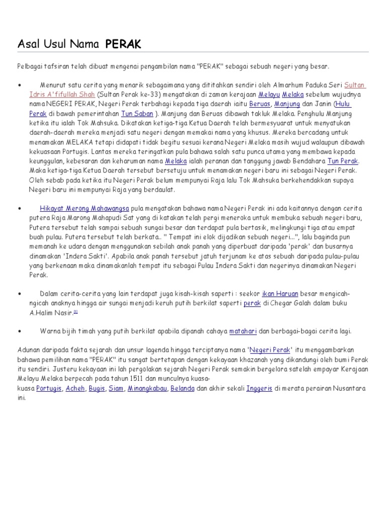 Sejarah Negeri Perak Asal Usul Orang Melayu