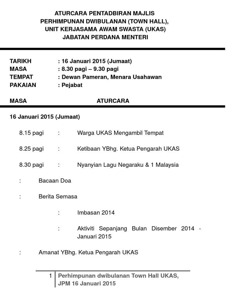 Teks Emcee Dan Atur Cara Pentadbiran Perhimpunan Bulanan Ukas Townhall 1612015