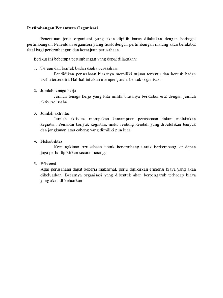 Pertimbangan Penentuan Organisasi Docx