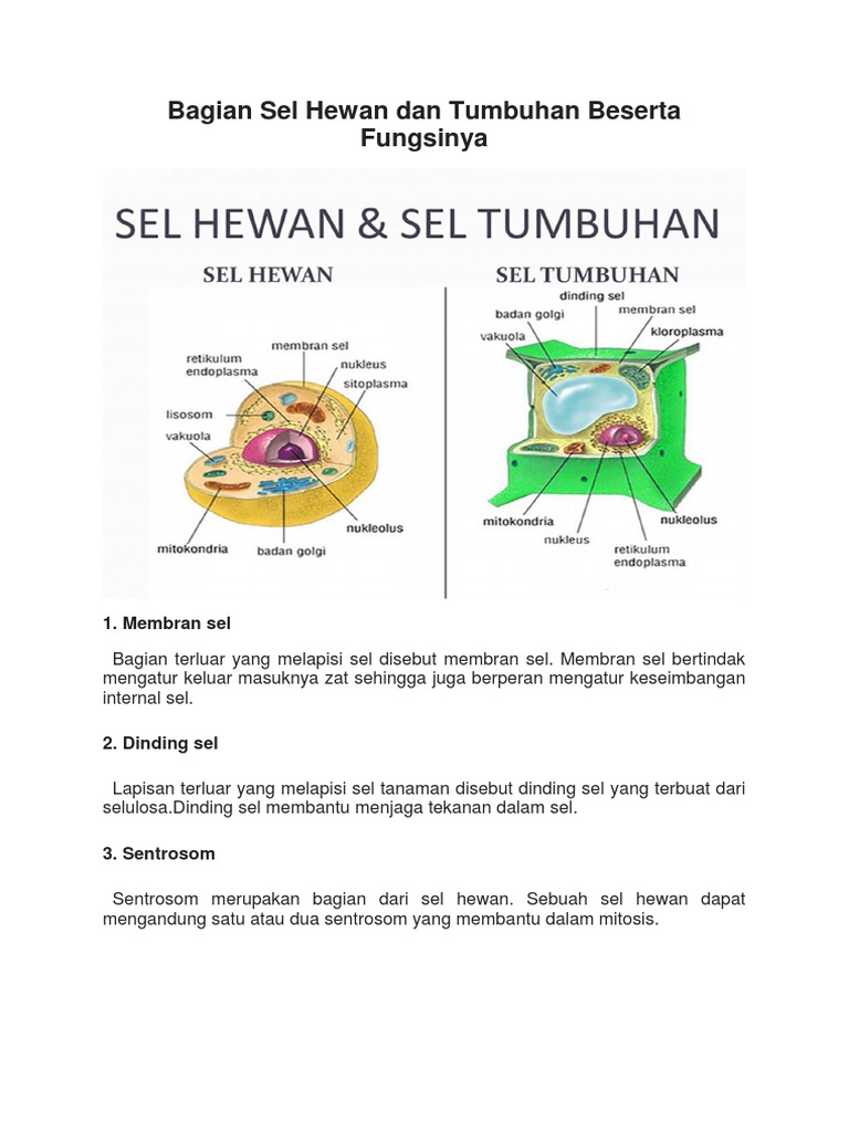 Bagian Sel Hewan Dan Tumbuhan Beserta Fungsinya