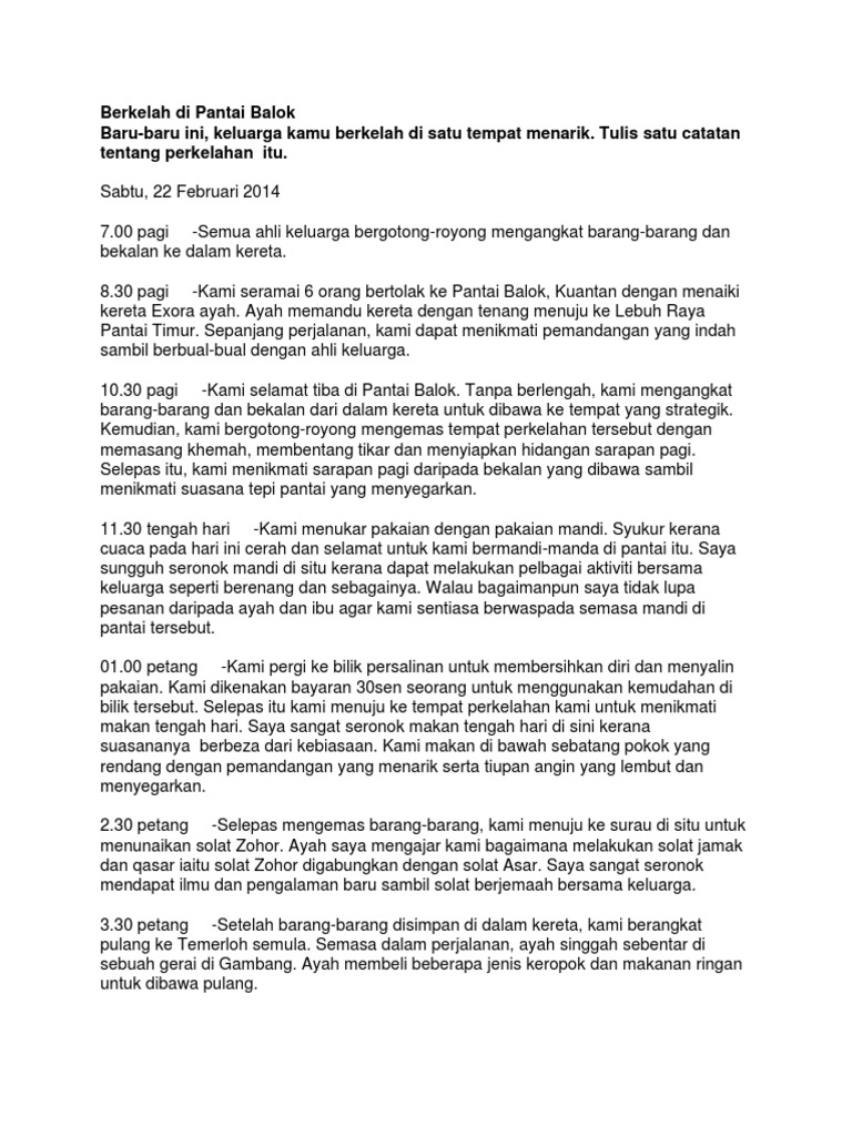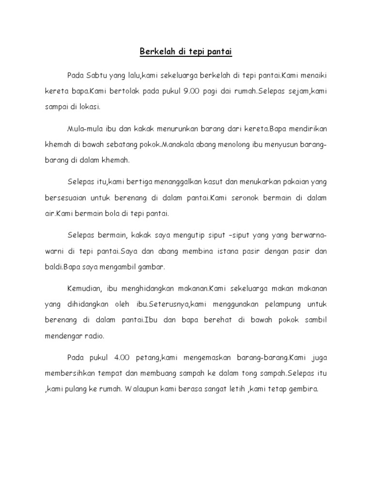 Karangan Berkelah Di Tepi Pantai Tahun 4