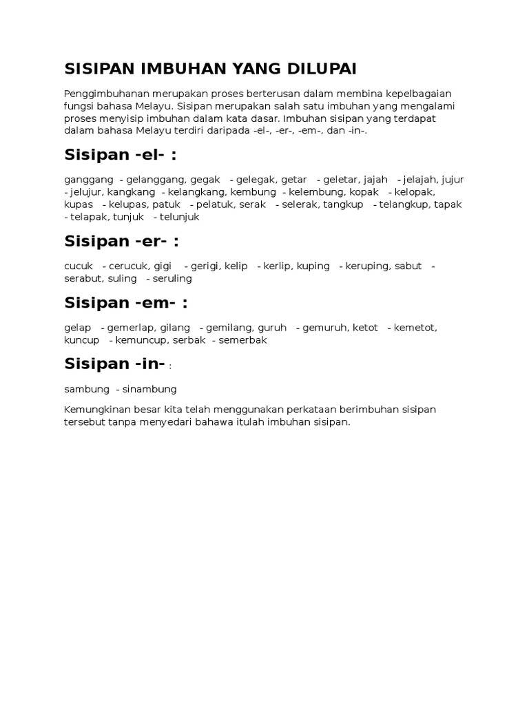Sisipan Imbuhan Yang Dilupai