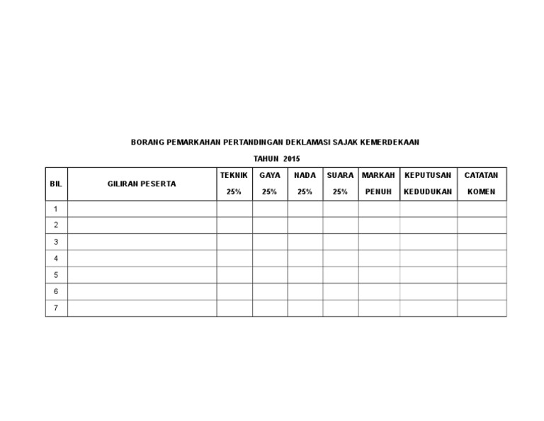 Borang Pemarkahan Pertandingan Deklamasi Sajak Sempena Bulan Kemerdekaan
