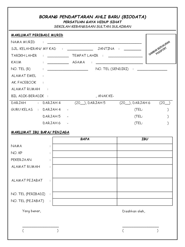Contoh Borang Pendaftaran Ahli Persatuan