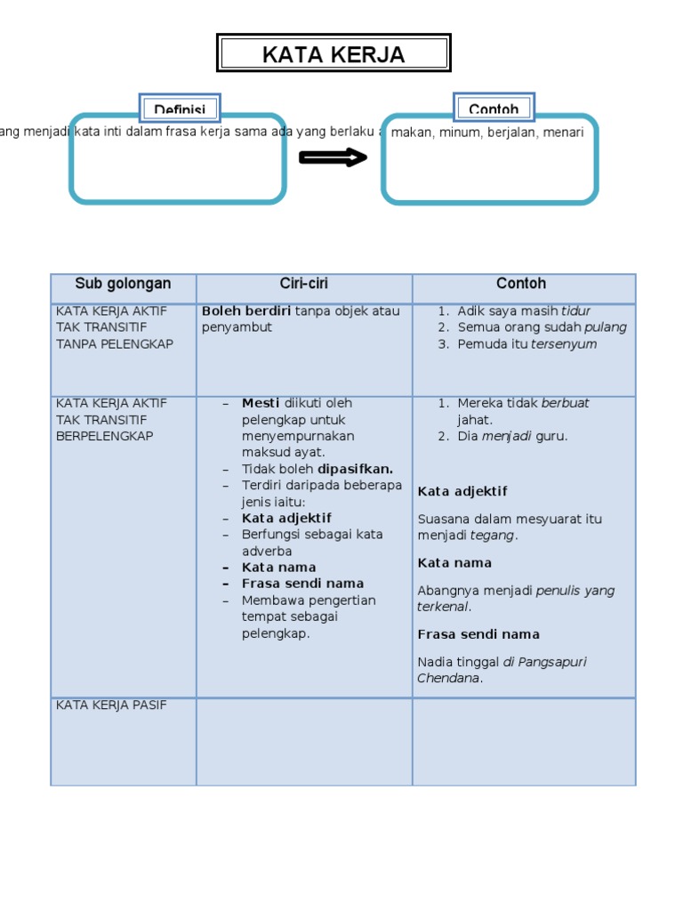 Kata Kerja Transitif Dan Kata Kerja Tak Transitif Pdf Document