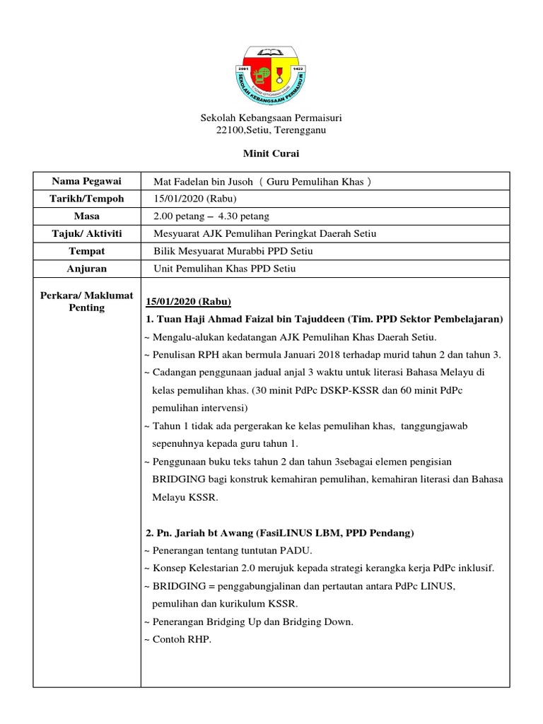 Contoh Minit Mesyuarat Terkini 2015 Wall Ppx