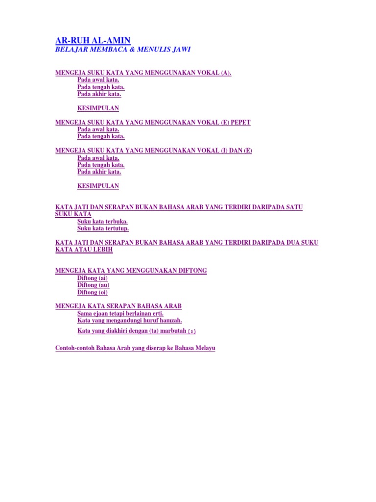 Contoh Suku Kata Terbuka Dan Tertutup Jawi Bagikan Contoh