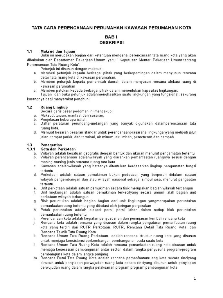 Tata Cara Perencanaan Perumahan Kawasan Perumahan Kota