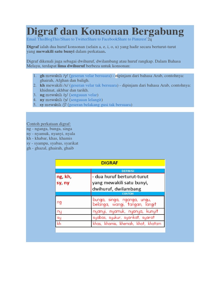 Diftong Digraf Vokal Berganding Konsonan Bergabung School Fails Map