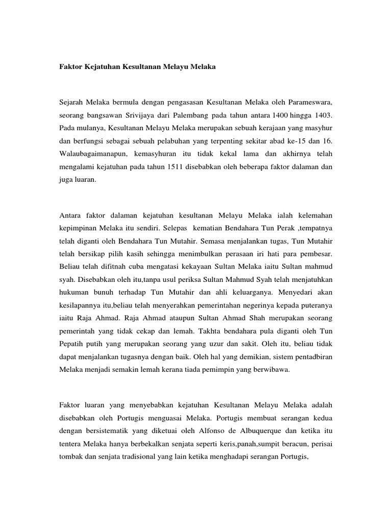 Faktor Kejatuhan Kesultanan Melayu Melaka Pdf