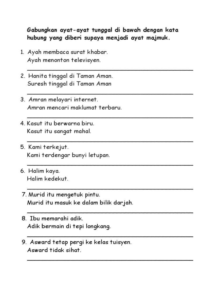 Gabungkan Ayat Tunggal Menjadi Ayat Majmuk
