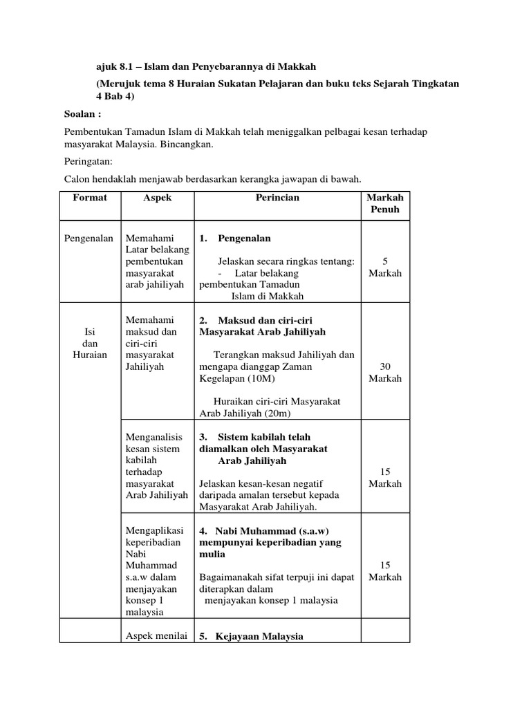 Skema Jawapan Sejarah Kertas 3 Islam Dan Penyebarannya Di Makkah Hallow Keep Arts