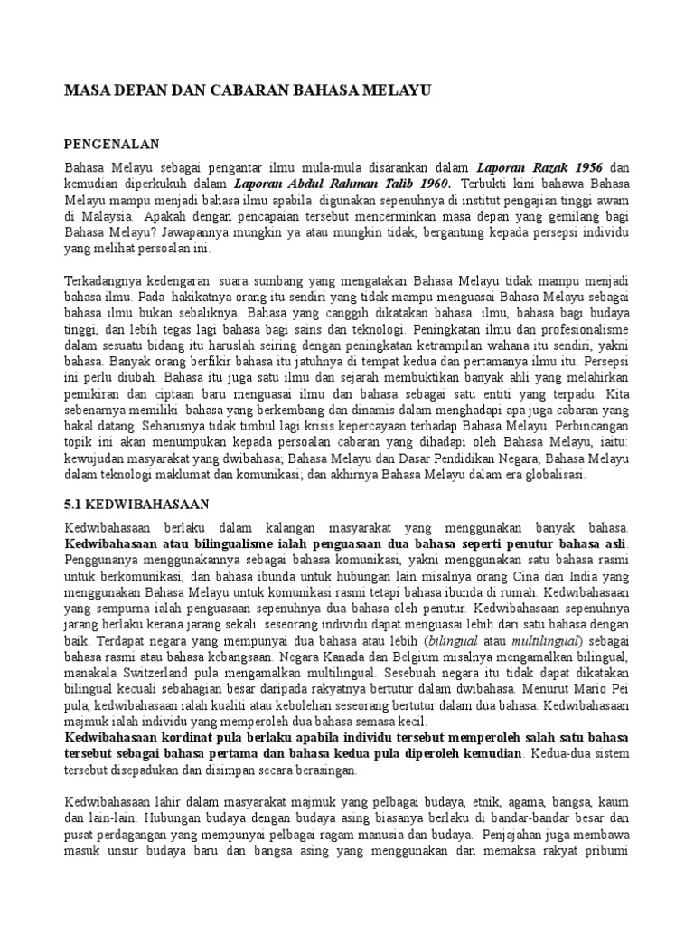 Doc Masa Depan Dan Cabaran Bahasa Melayu Unitkoko Skbp Academia Edu