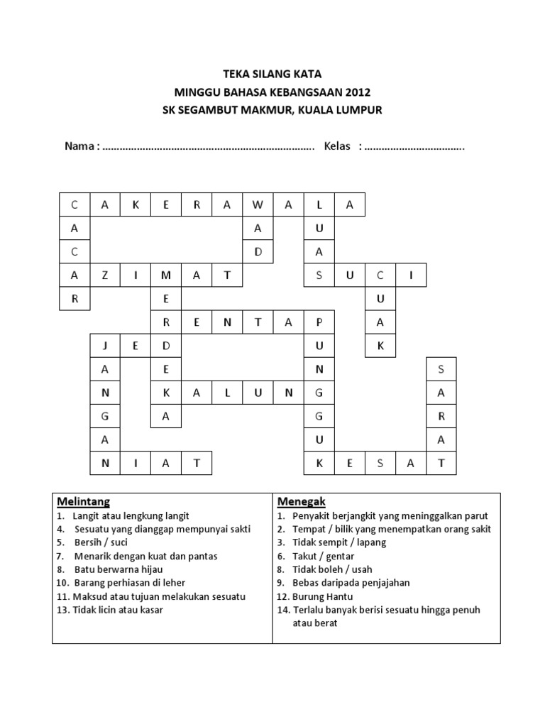 Contoh Teka Silang Kata Bahasa Melayu Tingkatan 2 Yang Sangat Bermanfaat Untuk Para Murid Dapatkan Pekeliling Terbaru Kerajaan