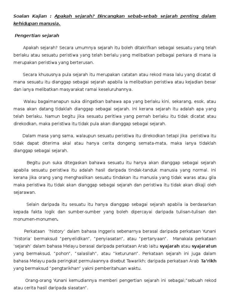 Jelaskan Pengertian Sejarah Secara Umum Brainly Co Id