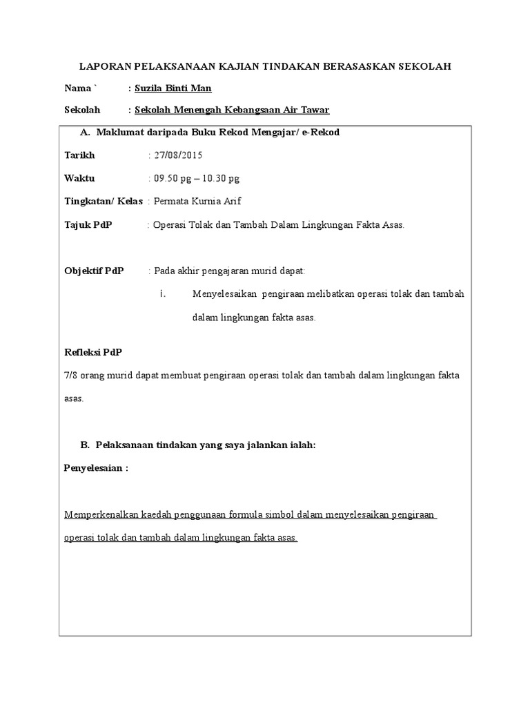 Laporan Pelaksanaan Kajian Tindakan Berasaskan Sekolah Doc