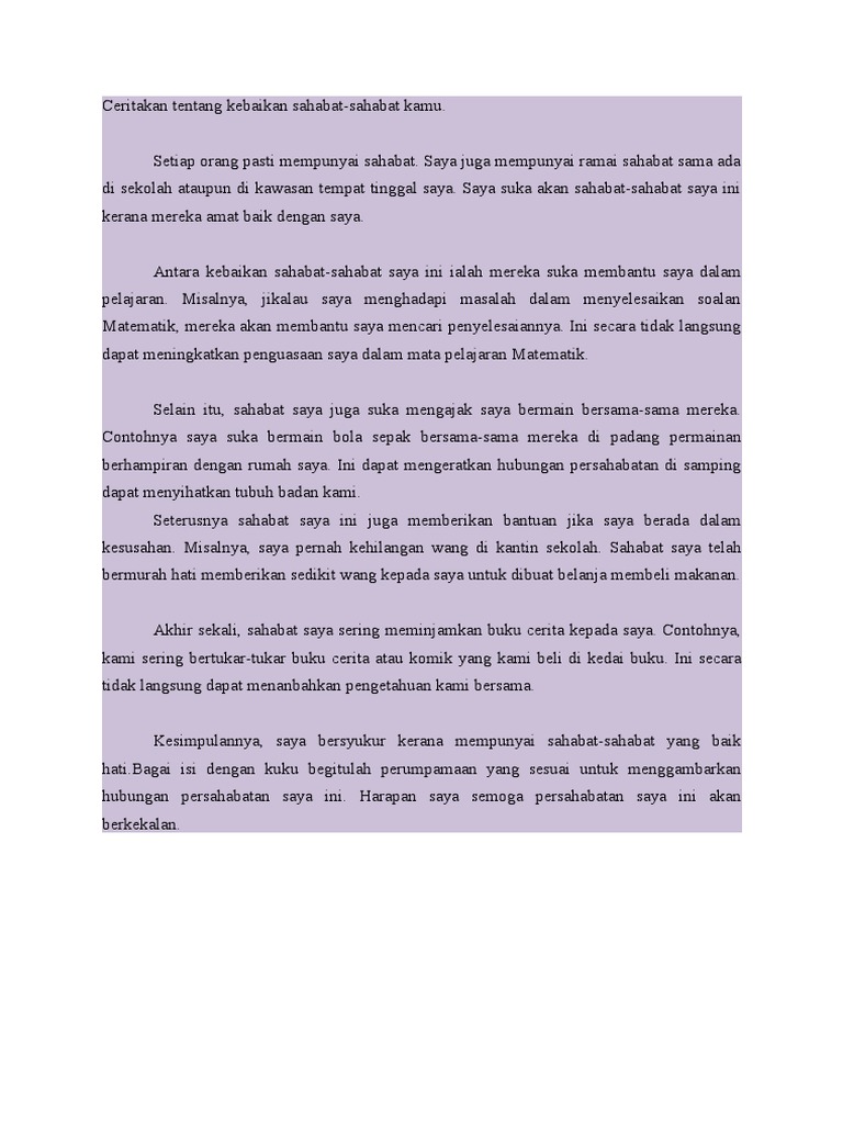Kawan Baik Saya Contoh Karangan 1 Docx