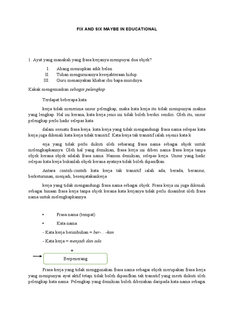 Contoh Kata Kerja Tak Transitif Materi Pelajaran 4
