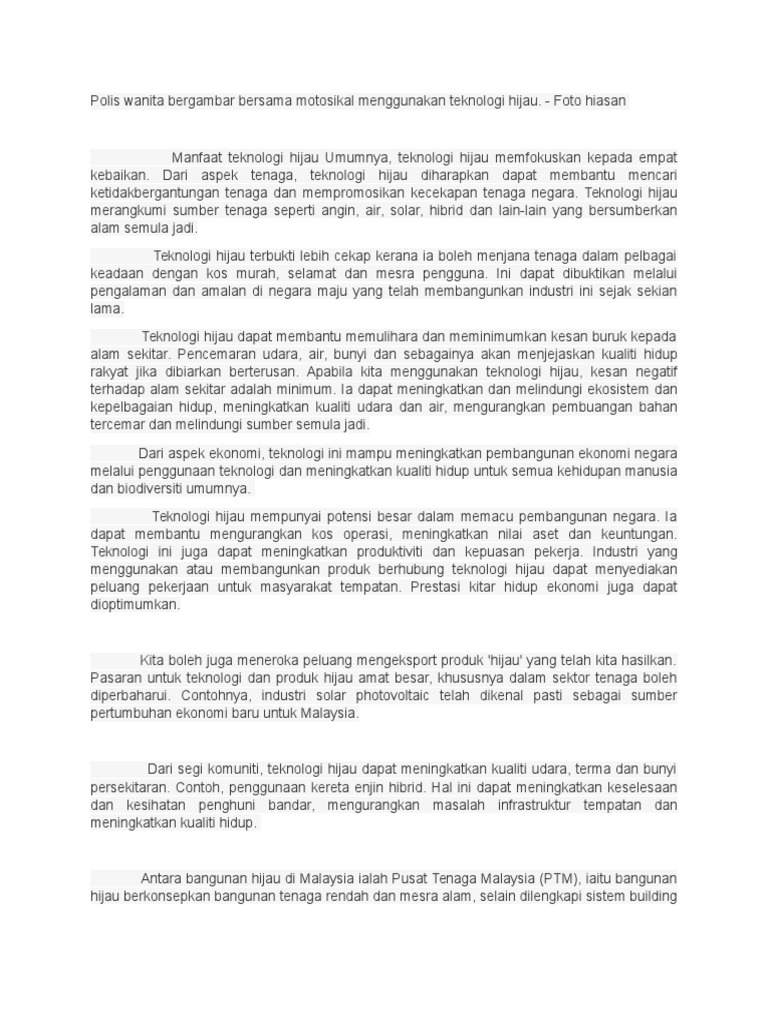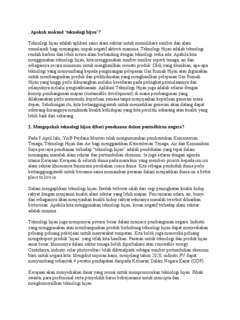 In 2020 Kepentingan Teknologi Hijau Karangan