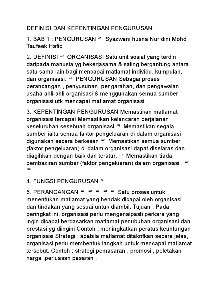 Definisi Dan Kepentingan Pengurusan