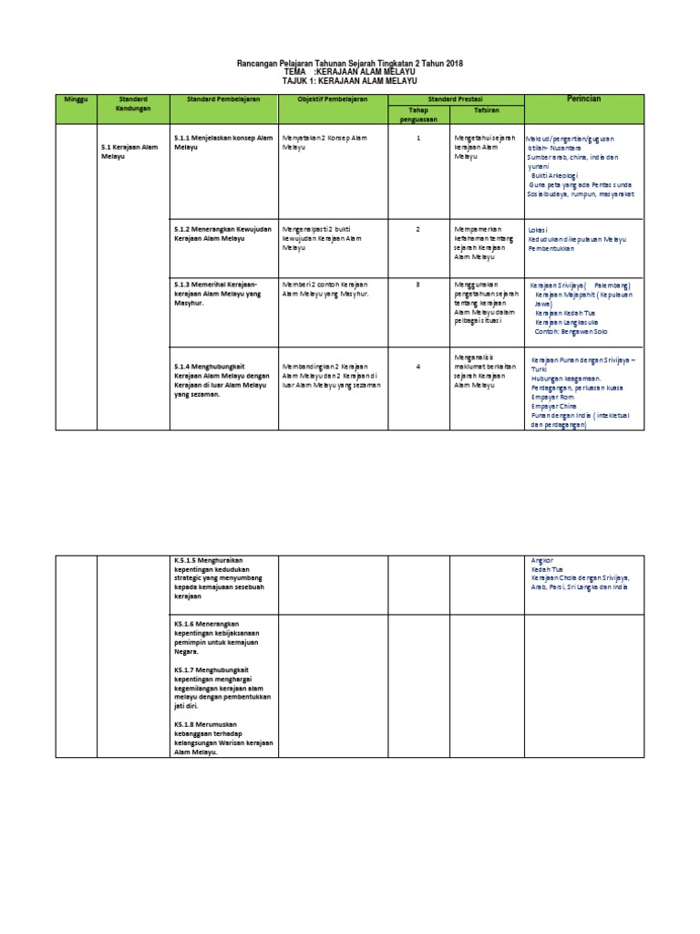 Doc Rancangan Pelajaran Tahunan Sejarah Tingkatan 2 Tahun 2018 Tema Warisan Negara Tajuk 5 Kerajaan Alam Melayu Halim Afif Academia Edu