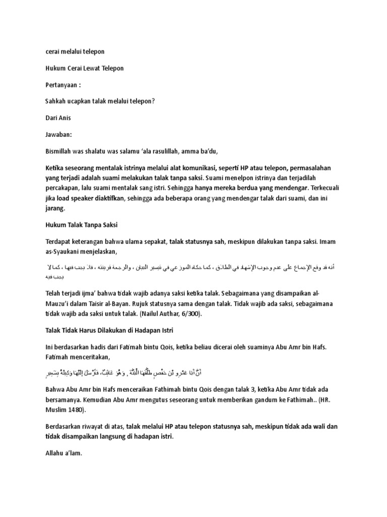 Beritahu Apakah Hukum Cerai Isteri Melalui Sms