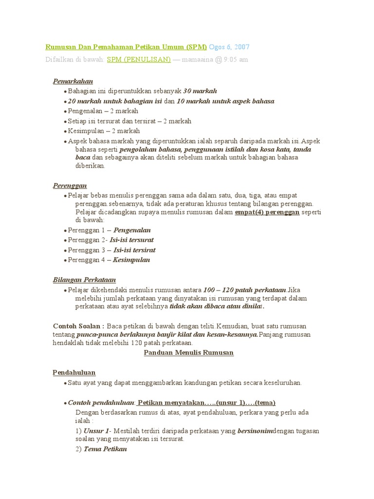 Rumusan Dan Pemahaman Petikan Umum