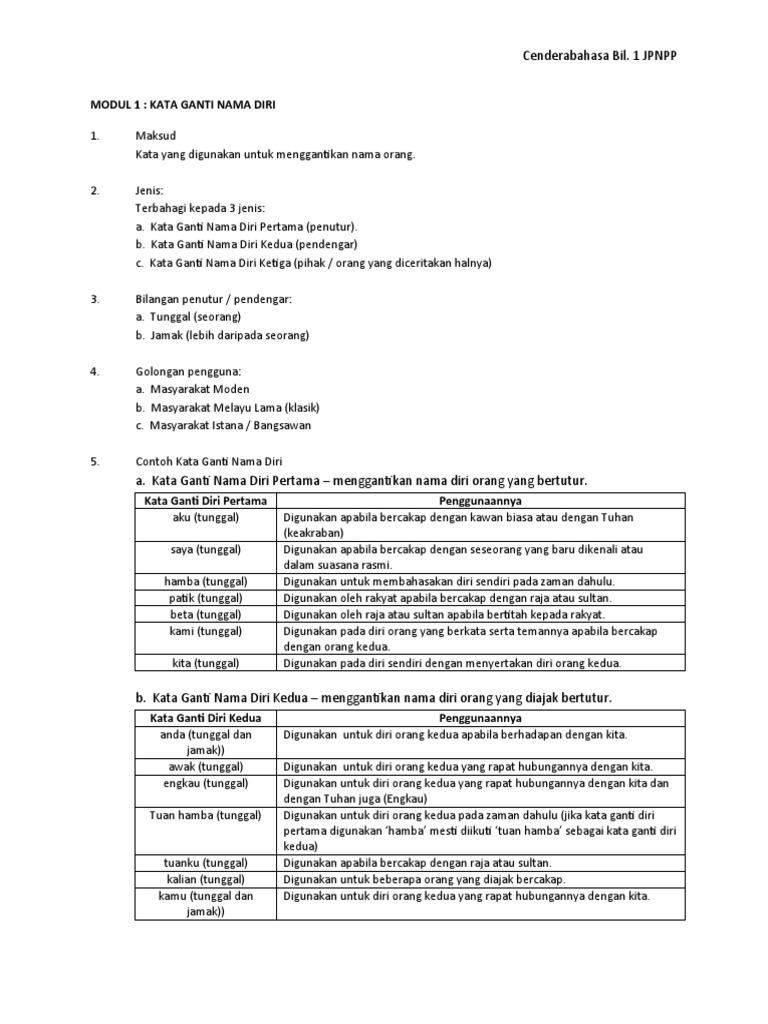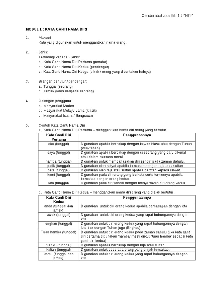 Modul 1 Kata Ganti Nama Diri Cenderabahasa Bil 1 Jpnpp