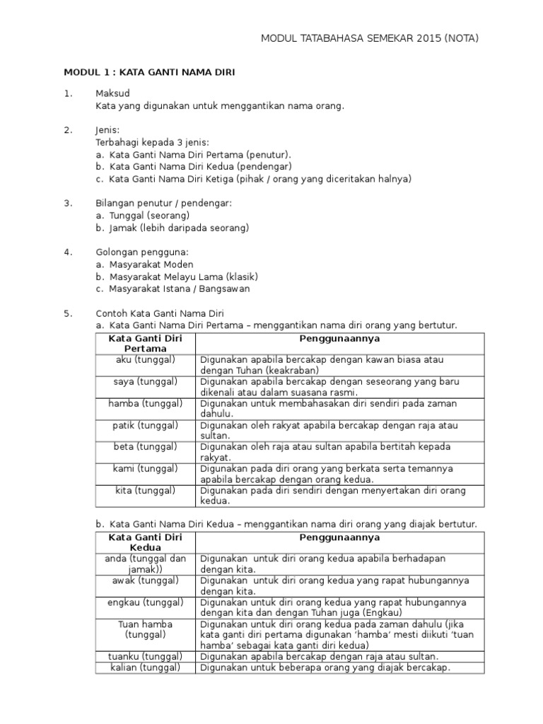 Doc Modul 1 Kata Ganti Nama Diri Gambir Sarawak Academia Edu