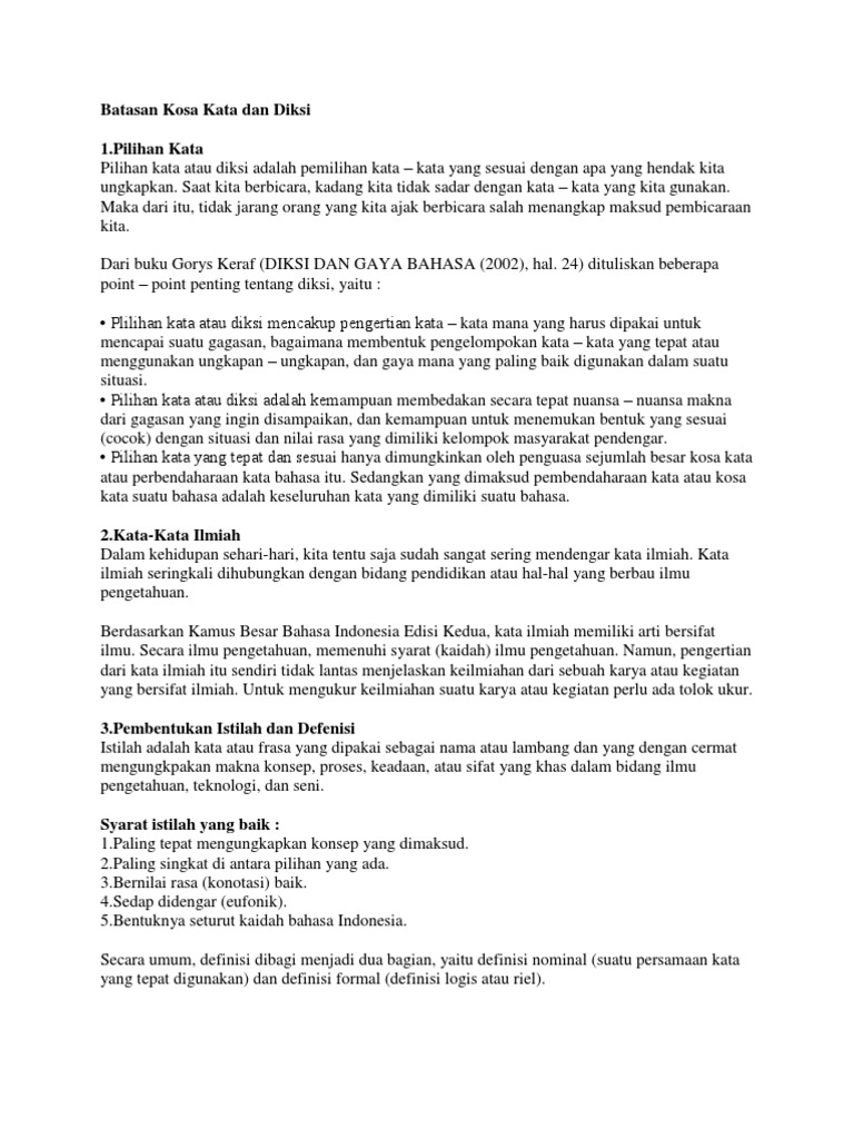 Batasan Kosa Kata Dan Diksi