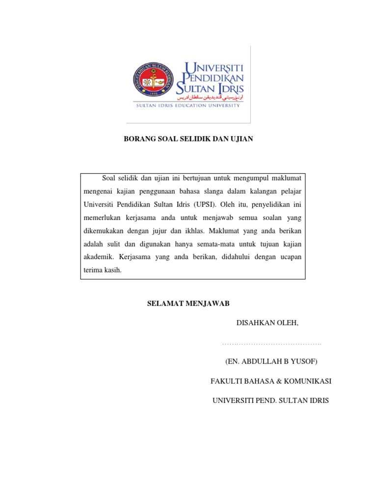 Contoh Borang Soal Selidik Dwibahasa Cards Of