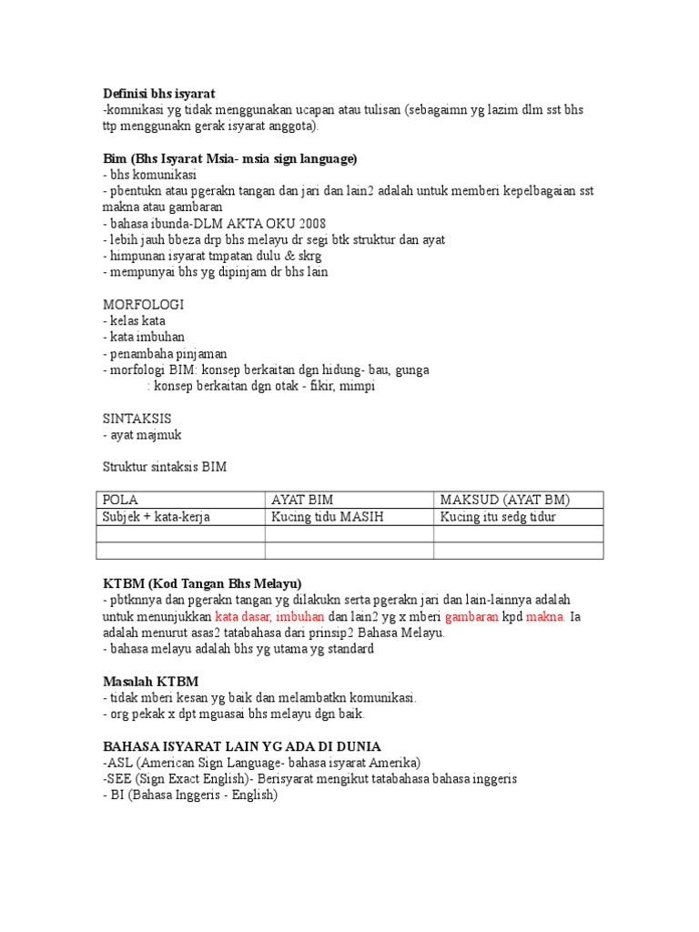 Definisi Bhs Isyarat