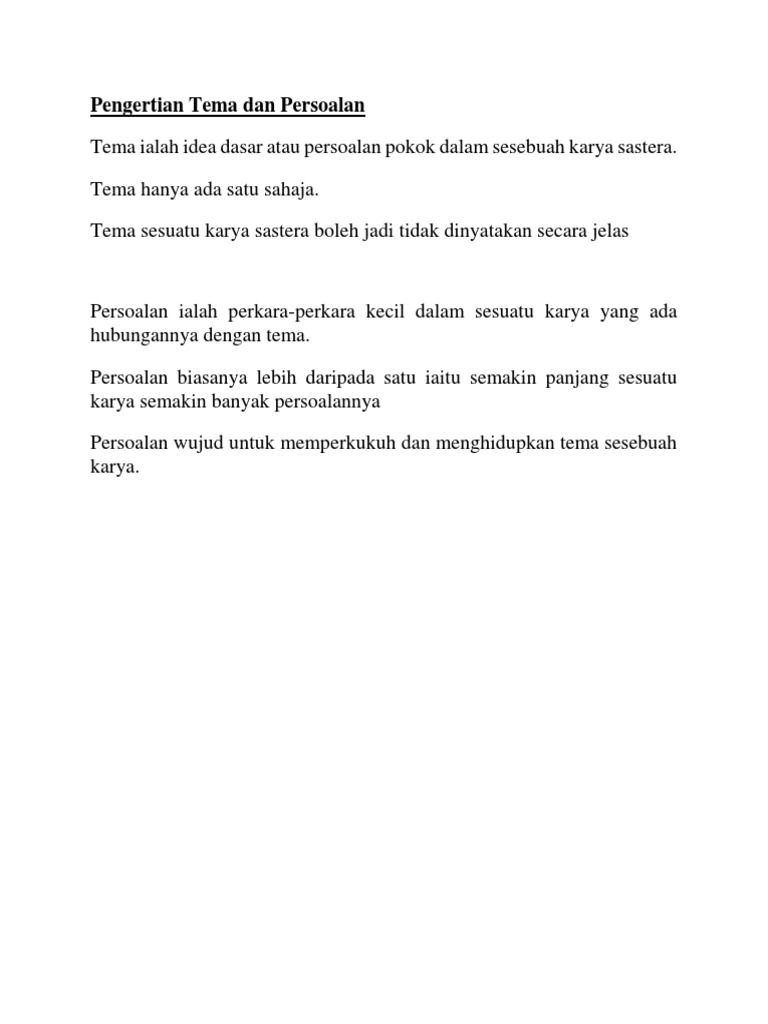 Pengertian Tema Dan Persoalan