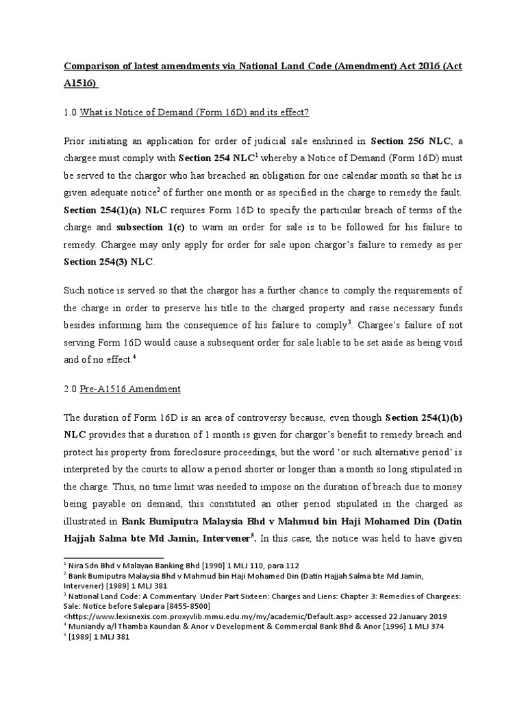 Comparison Of Latest Amendments Via National Land Code Foreclosure Government