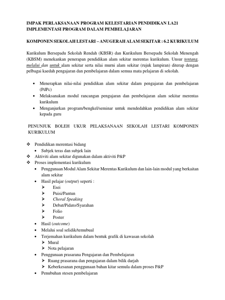 Komponen La21 Kurikulum