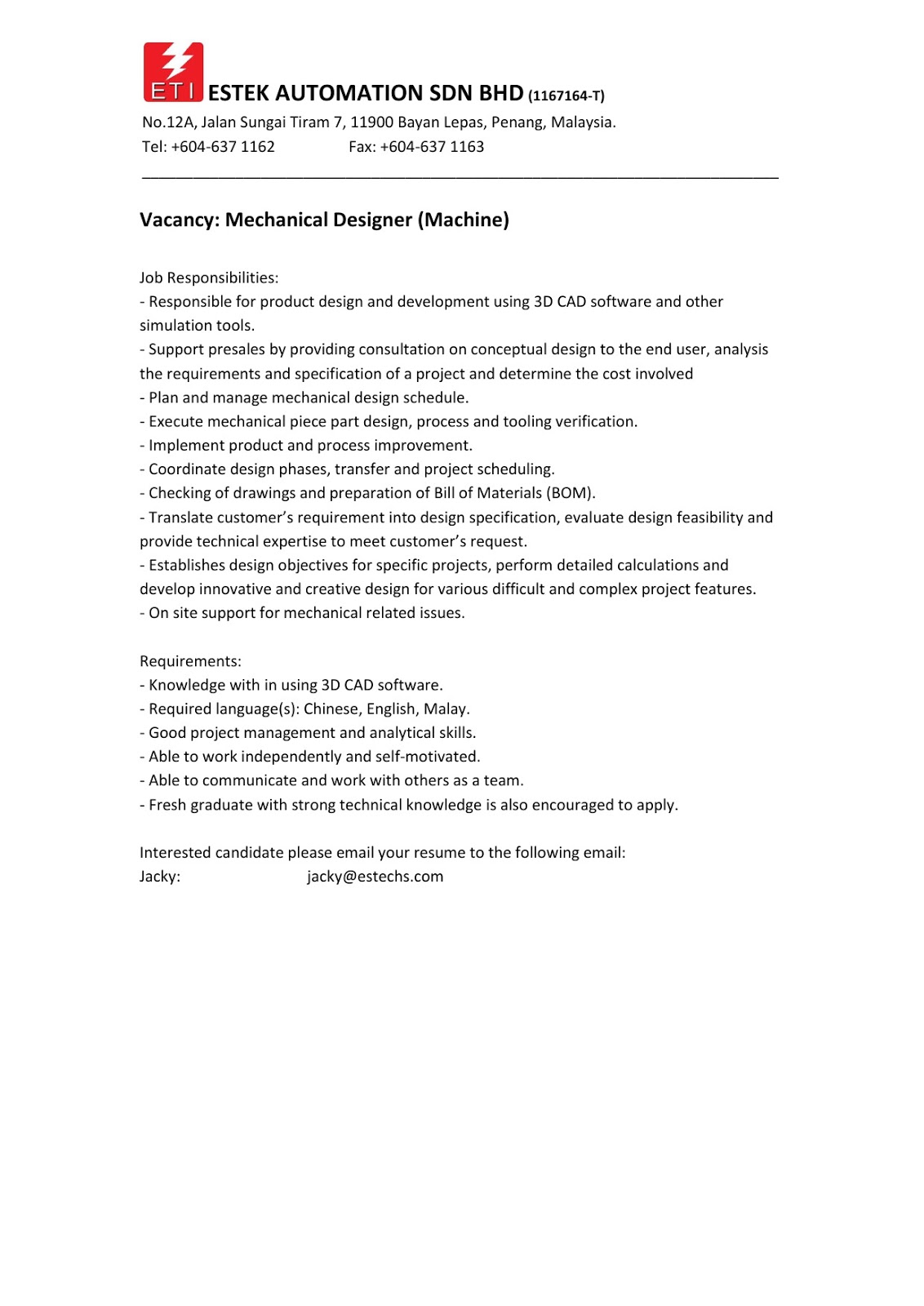 Official Career Job Info And Opportunity Mechanical Eng Usm 2018