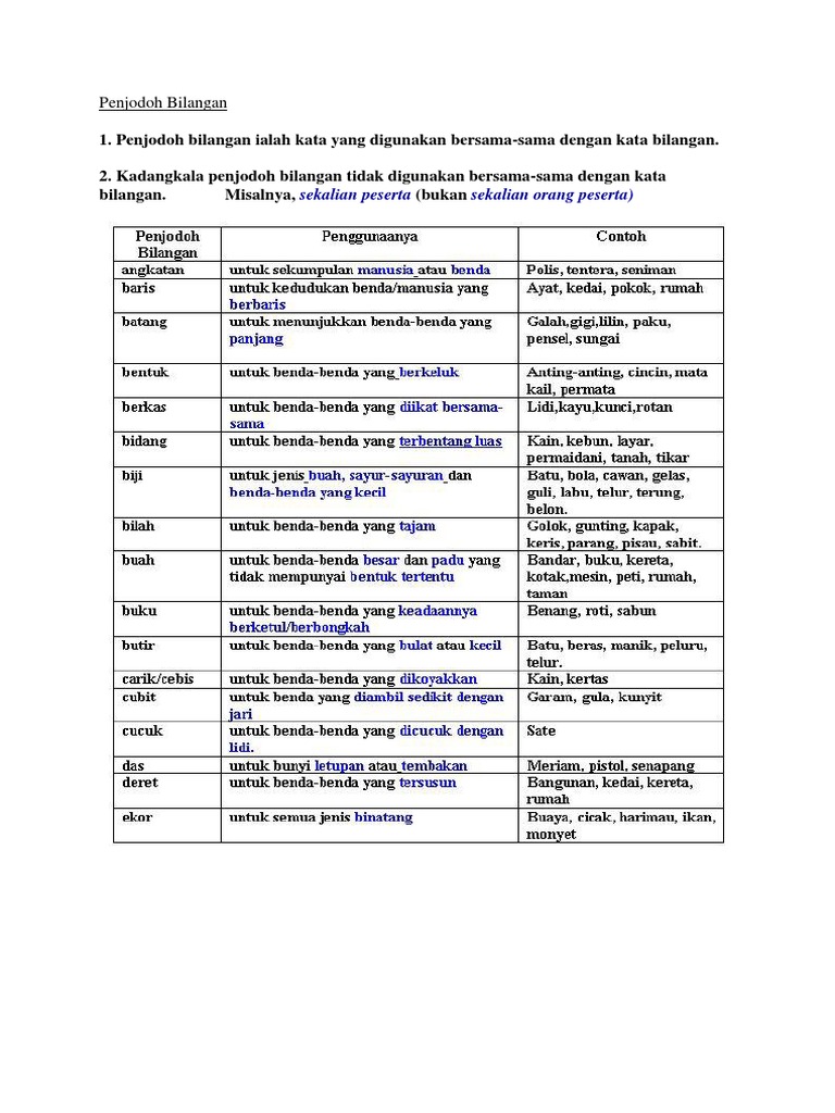 Penjodoh Bilangan Penjodoh Bilangan Digunakan Sebelum Sesuatu Kata Atau Nama Yang