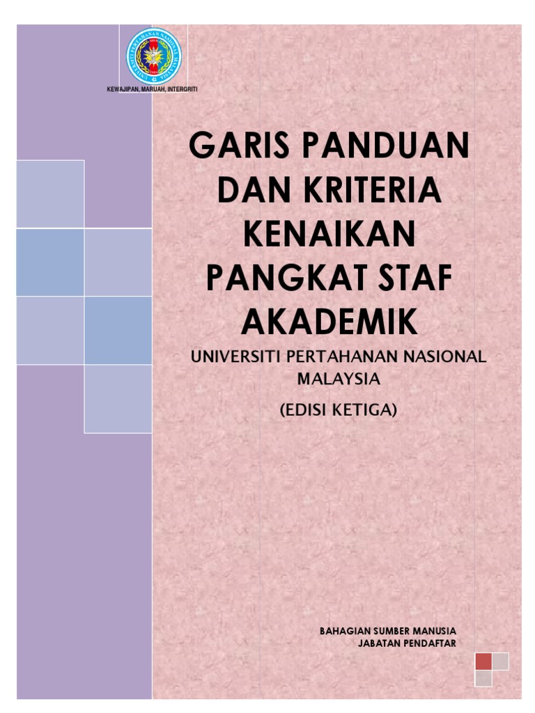 Garis Panduan Dan Kriteria Kenaikan Pangkat Staf Akademik Universiti Pertahanan Nasional Malaysia Edisi Ketiga