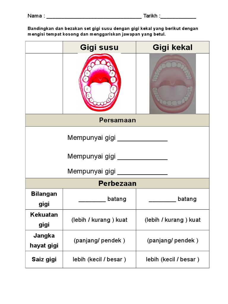 Viewlengkapkan Jadual Perbezaan Gigi Susu Dan Gigi Kekal Ciri Ciri Gigi Susu Gigi Kekal Jenis Gigi Bilangan Saiz Kekuatan Jangka Hayat Lengkapkan Jadual Perbezaan Gigi