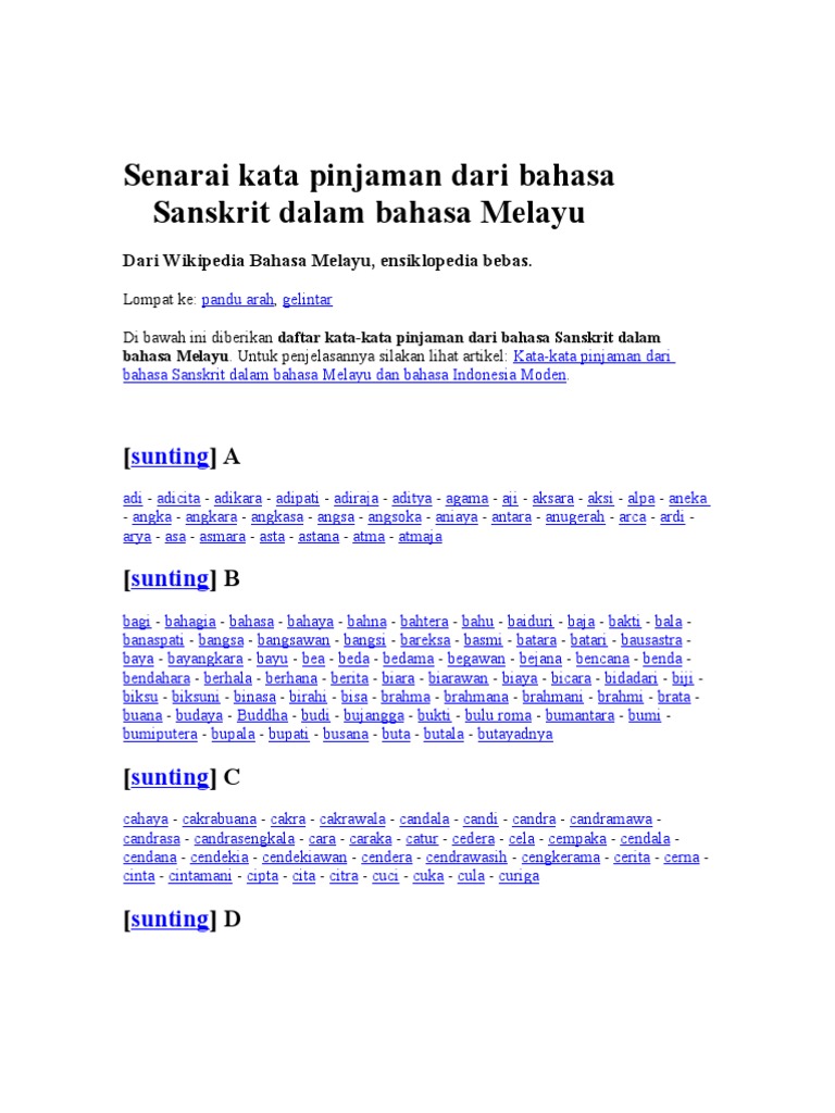 Senarai Kata Pinjaman Dari Bahasa Sanskrit Dalam Bahasa Melayu