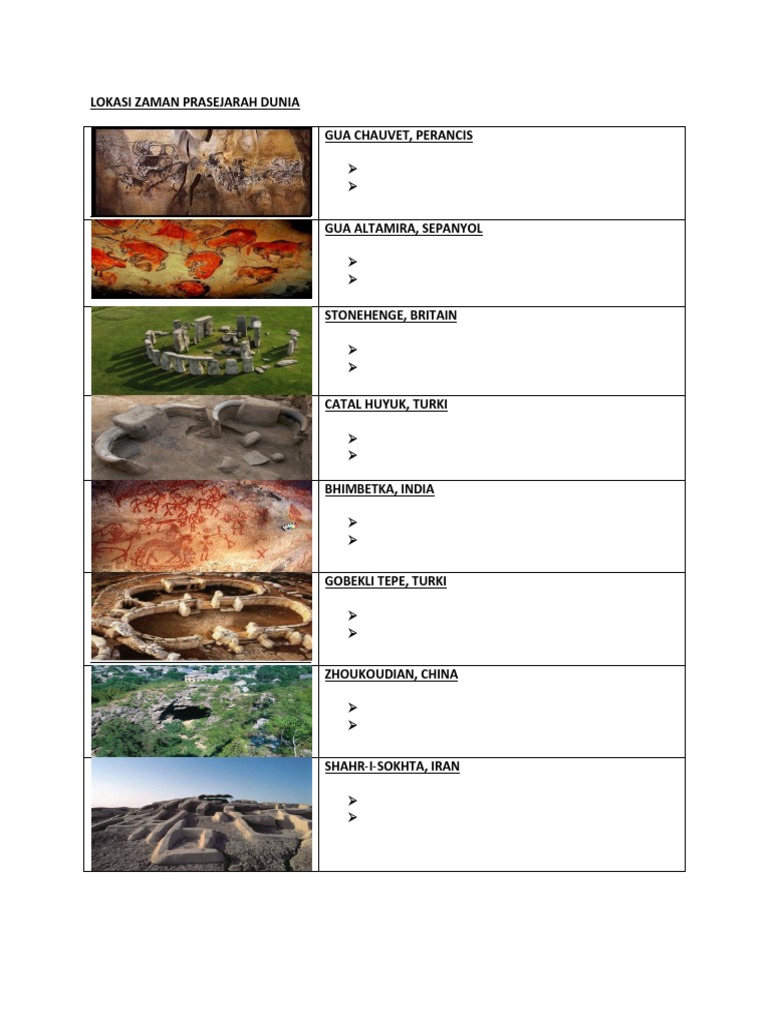 Peta Lokasi Zaman Prasejarah Di Seluruh Dunia