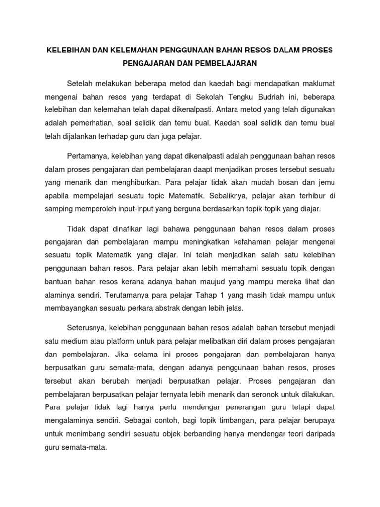 Kelebihan Dan Kelemahan Penggunaan Bahan Resos Dalam Proses Pengajaran Dan Pembelajaran