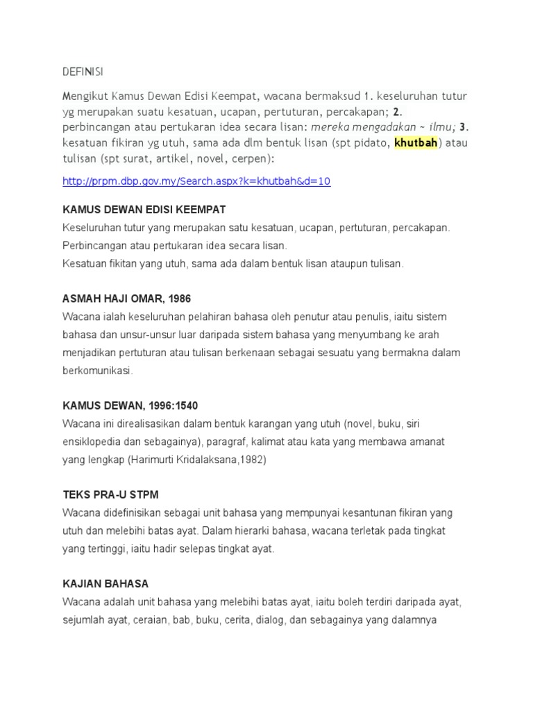 Koleksi Definisi Wacana