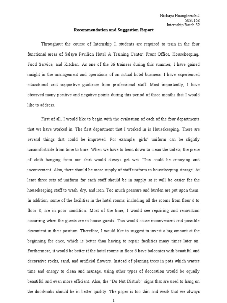 Recommendation And Suggestion Report Hotel Foodservice