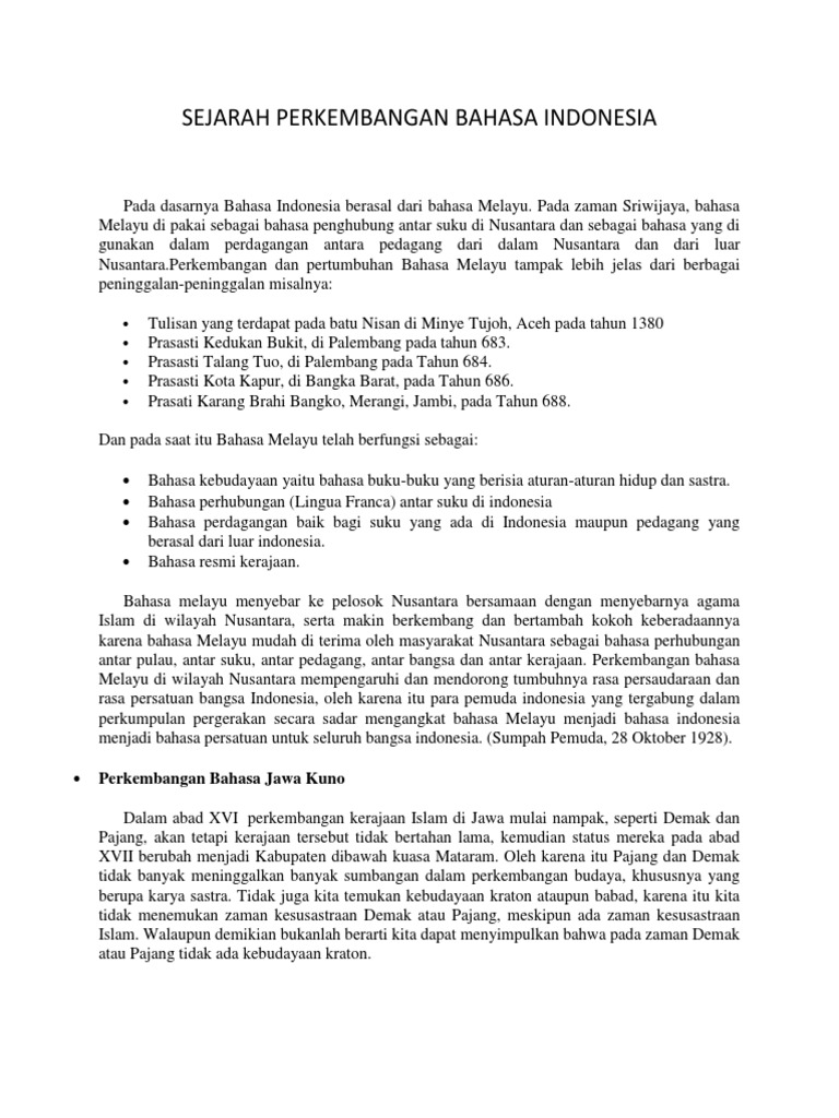 Sejarah Perkembangan Bahasa Melayu Menjadi Bahasa Indonesia Seputar Sejarah