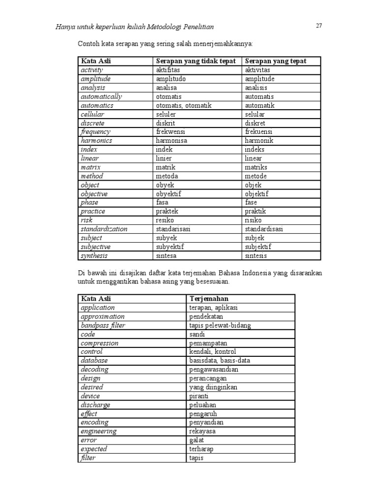 10 Contoh Kata Serapan Dan Terjemah