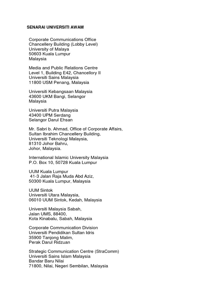 Senarai Ua Universiti Awam Di Malaysia Info Upu