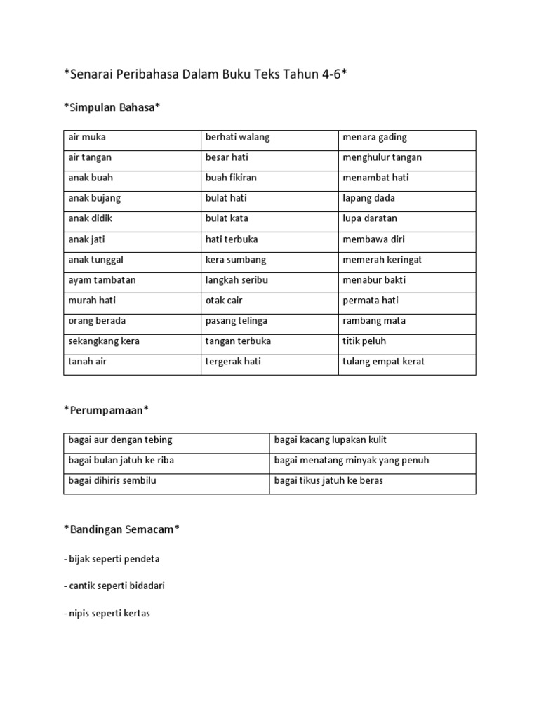 Senarai Peribahasa Sjkt Tahun 4 Tahun 6