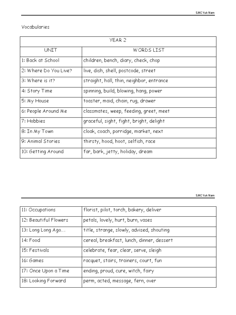 English Sjkc Vocabulary