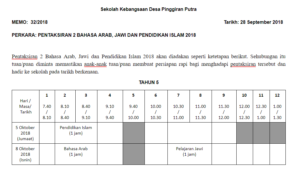 Sk Desa Pinggiran Putra Jadual Pentaksiran 2 Bahasa Arab Jawi Dan Pendidikan Islam